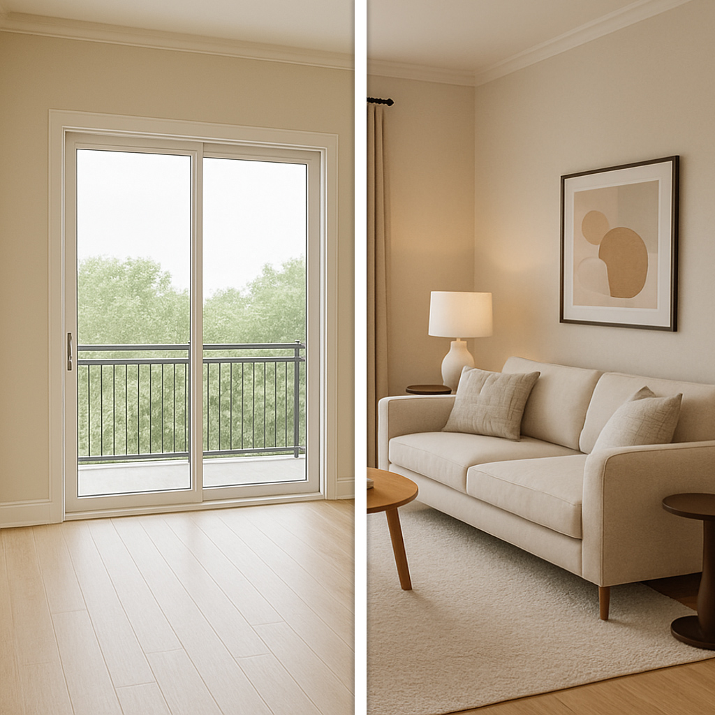 É exatamente isso que oferecemos: pegamos a foto do imóvel vazio e recriamos digitalmente a imagem com móveis e decoração sofisticada, dando ao ambiente um ar de luxo, acolhimento e desejo.